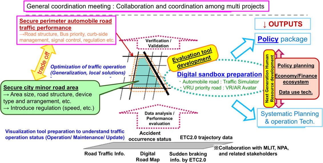 | R&D Technical Issues | ⑦ Development of safe, secure, and bustling road space and transportation system ⑩ Construction of a cyber-physical road space digital system infrastructure (digital sandbox) to realize safe, comfortable, and affluent mobility |